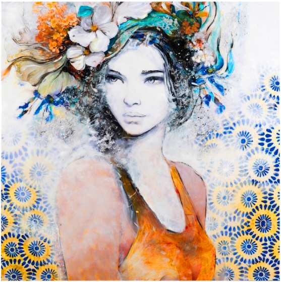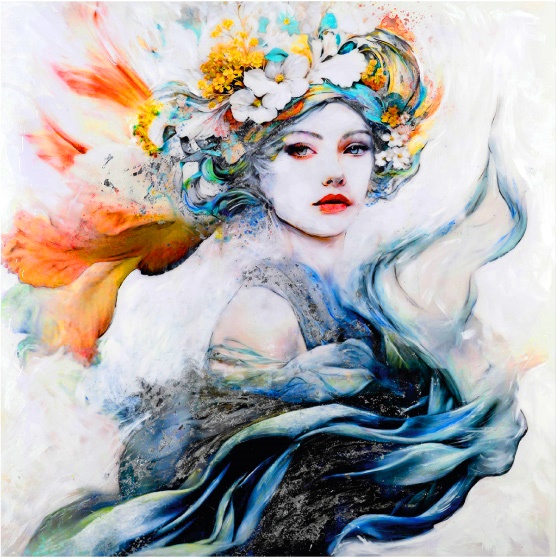L’artista ens convida a endinsar-nos en un univers on la naturalesa juntament amb les seves figures es converteixin en emoció. Les seves obres, realitzades amb tècnica mixta sobre suport rígid i acabades amb resina epoxi, desprenen una energia que sembla expandir-se més enllà de l’obra. Cada flor, cada textura, cada figura, vibra entre la matèria i la llum, entre el tangible i l’efímer.