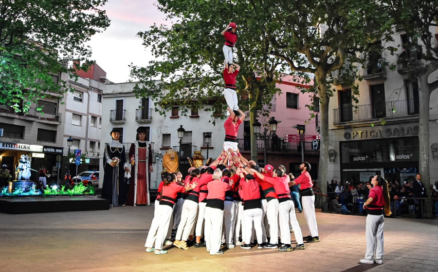La Colla castellera Nens del Vendrell tot seguit, han fet un pilar que ha girat 180 graus.