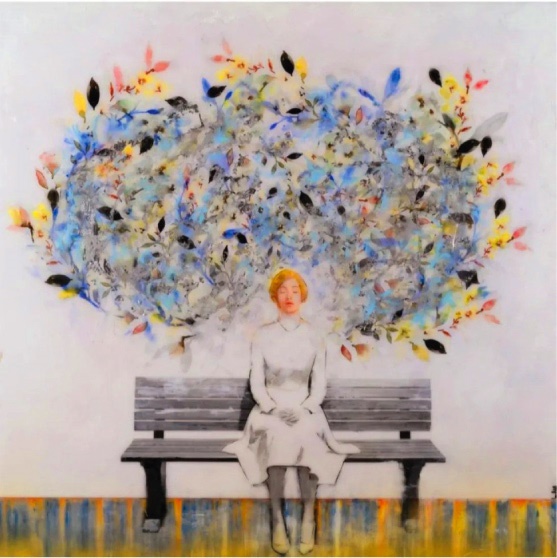 L’artista ens convida a endinsar-nos en un univers on la naturalesa juntament amb les seves figures es converteixin en emoció. Les seves obres, realitzades amb tècnica mixta sobre suport rígid i acabades amb resina epoxi, desprenen una energia que sembla expandir-se més enllà de l’obra. Cada flor, cada textura, cada figura, vibra entre la matèria i la llum, entre el tangible i l’efímer.