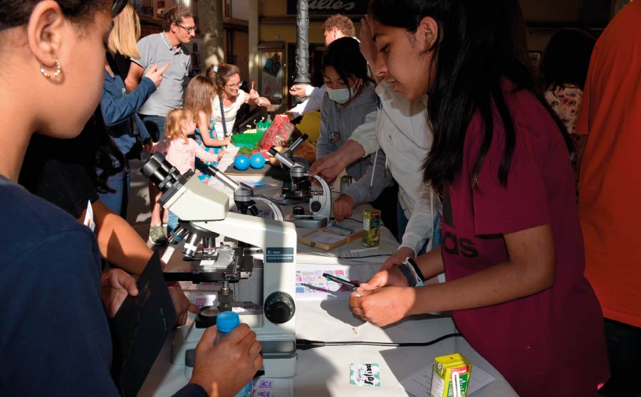 Aquest any, però, amb la pandèmia superada, la Fira "Portem la Ciència al carrer" ha tornat amb més força que mai i ha rebut a centenars de visitants, des de famílies senceres, nois, noies de diverses edats que des d'abans de les 17 h hi han omplert de gom a gom la plaça Nova del Vendrell.
